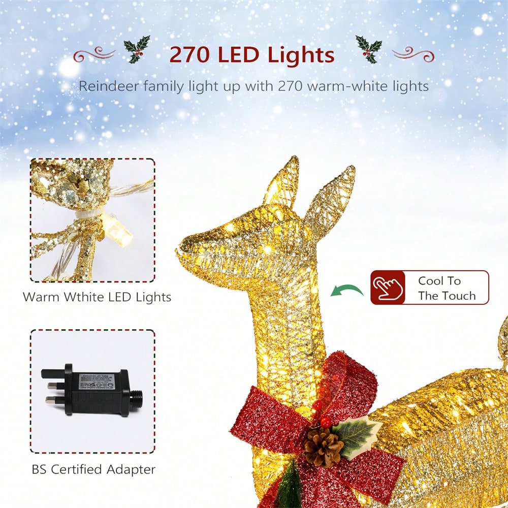 Picture a chic trio: a majestic parent reindeer, a loving mate and an adorable fawn, all wrapped in warm LED illumination and dressed in elegant white and gold hues. Whether by your doorstep, in the garden or on the lawn, they instantly transform your outdoor space into a winter wonderland that delights family and visitors alike.