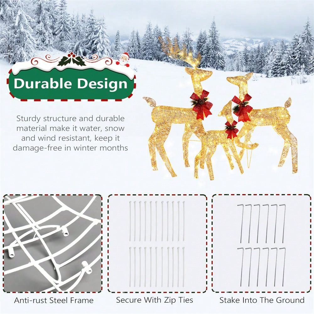 Brighten up your holiday season with the 3-Piece Lighted Christmas Reindeer Family Set in White & Gold — the ultimate outdoor decoration to capture joyful, festive moments.
